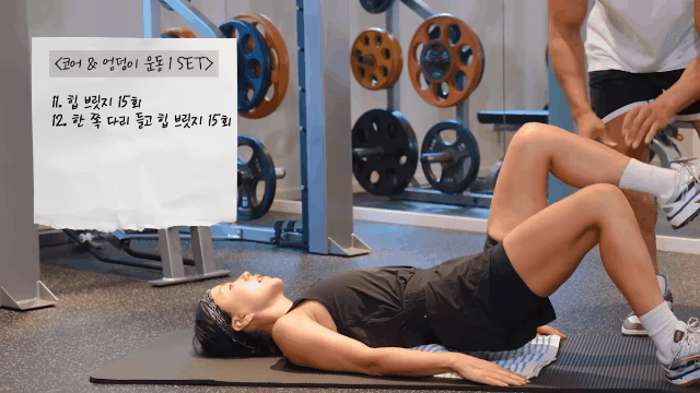 12. 한 쪽 다리 들고 힙 브릿지 15회