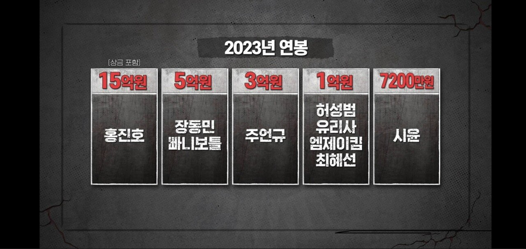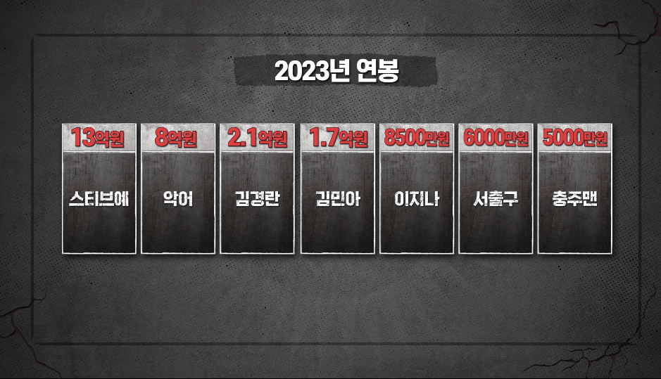 작년 종합소득세 과세표준에 따라 게임머니를 지급해서 출연자들 소득이 공개됨