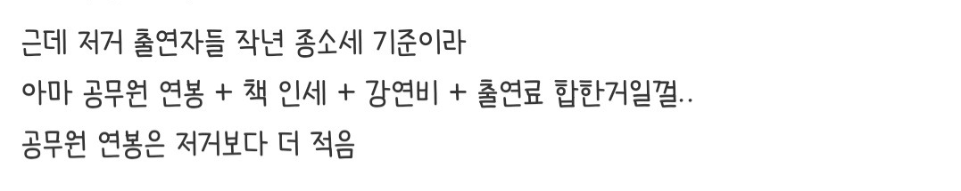 출연진 중에 인플루언서나 프리랜서가 많아서 비교하긴 애매하지만... 그 중 제일 작은 충주맨 연봉 ㅠㅠ