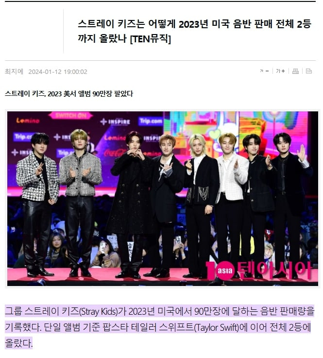작년에 미국에서 테일러 스위프트 다음으로 앨범을 가장 많이 팔았다고 함