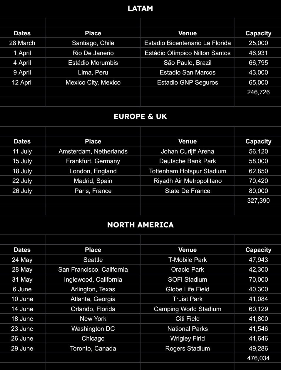 이 외에도 대부분 스타디움이거나 아레나여도 스타디움 크기