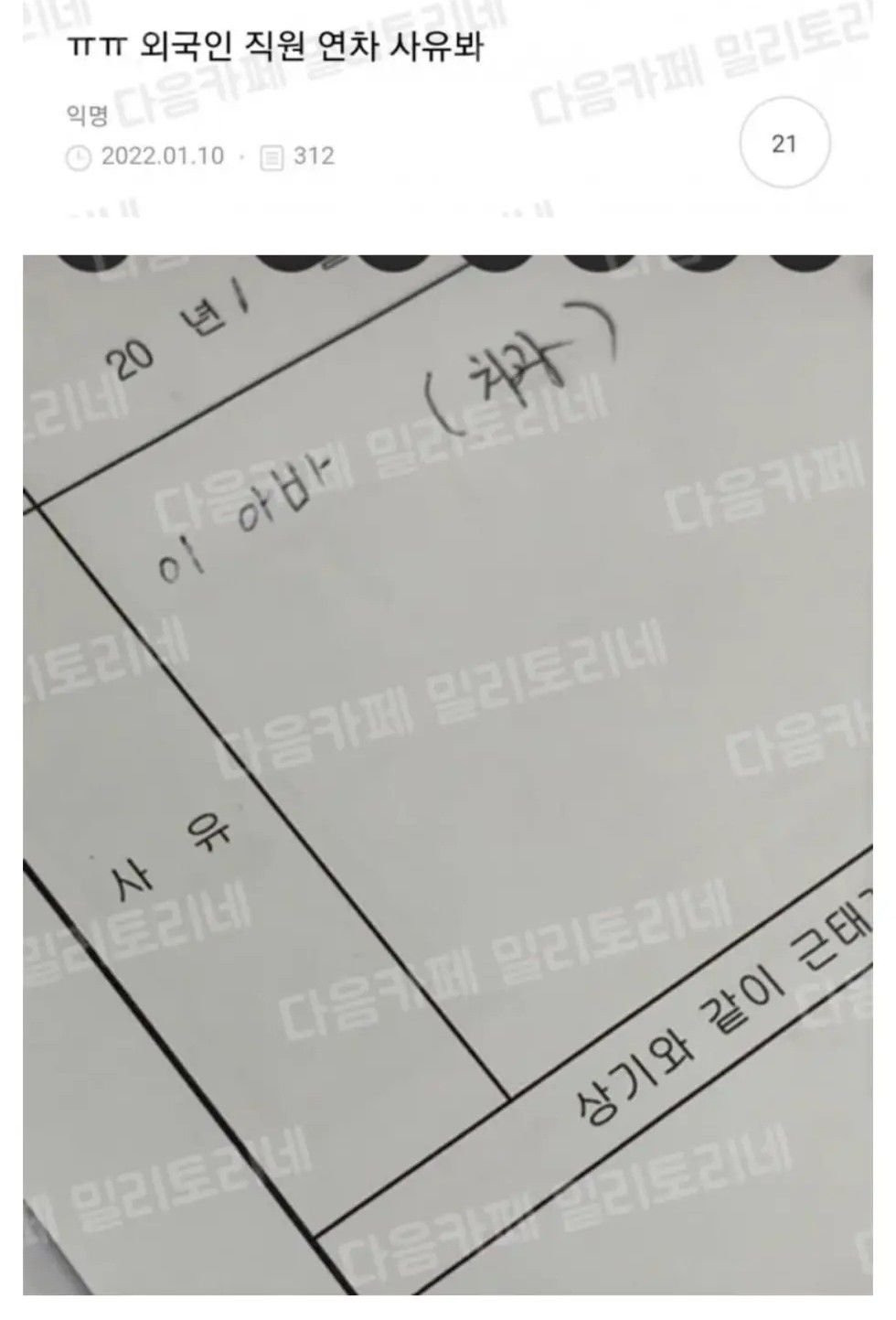 인터넷에도 재미있는 연차사유는 많지만 전설의 "그냥"은 없음 ㅋㅋ