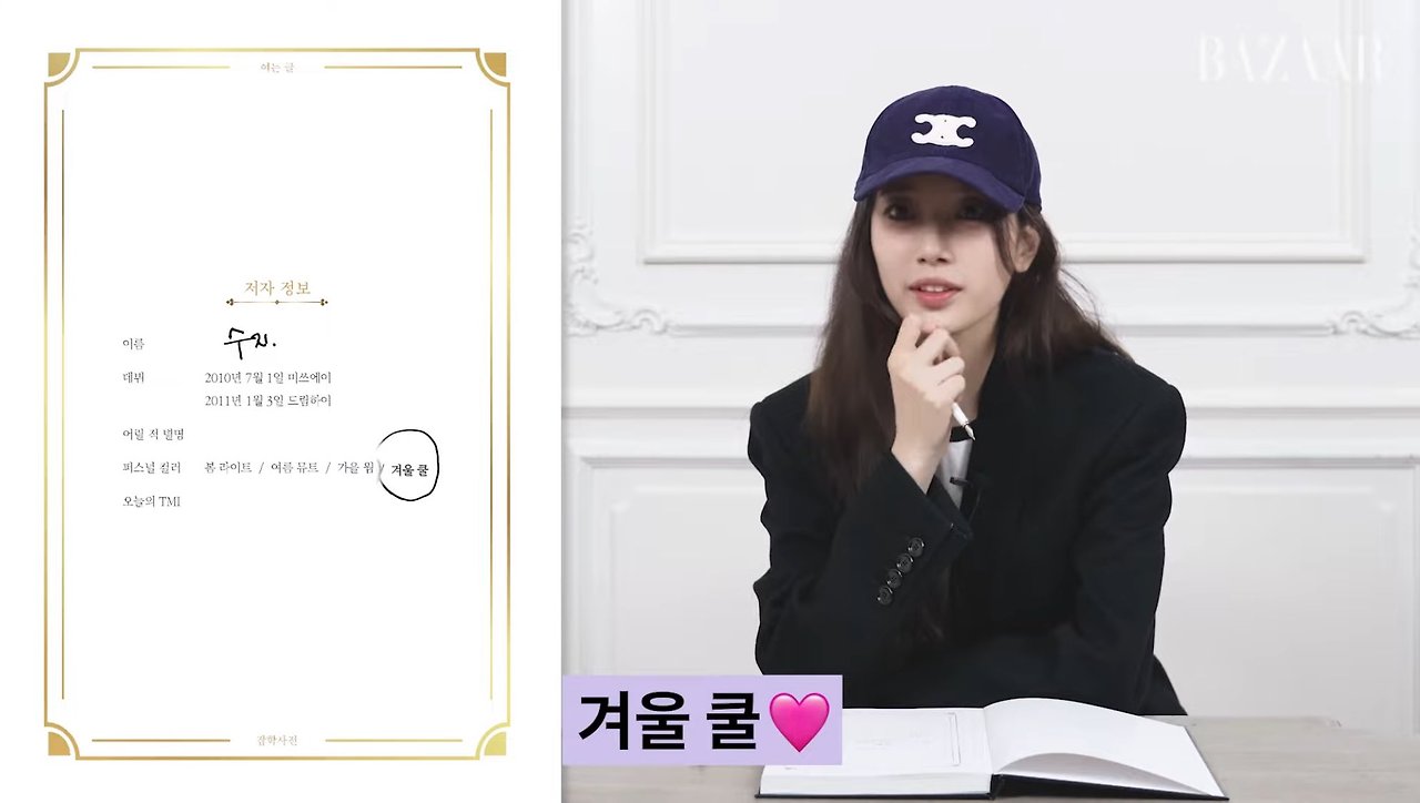 겨쿨 이해 감 수지 흑발에 피부 클리어하게 화장하는거 진짜 잘어울림 안나에서 나온 스타일링도 다 잘 어울리고 지금 저 블랙코트에 모자색까지 딱 겨쿨ㅋㅋ