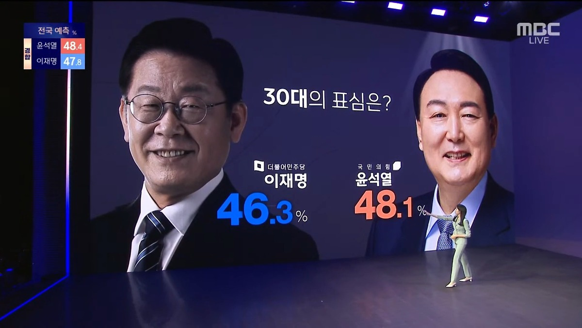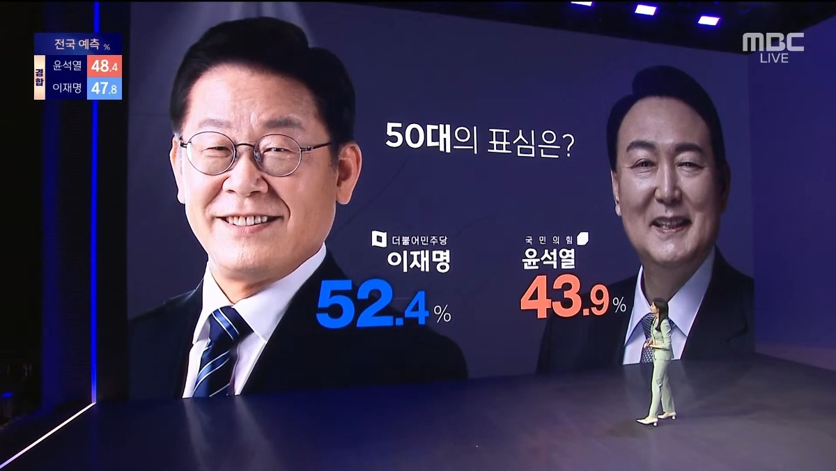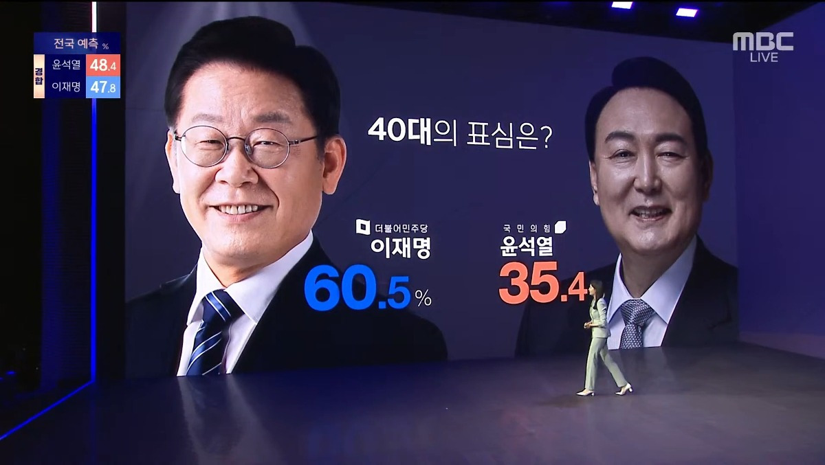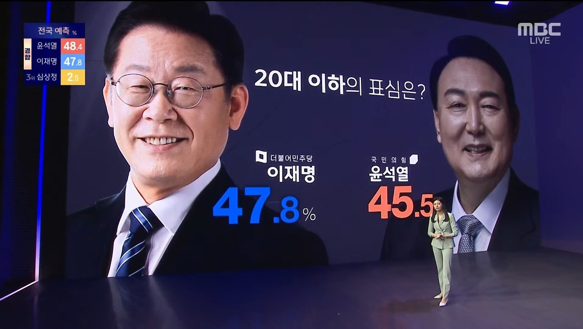 20대, 40대, 50대에서는 이재명 더불어 민주당 후보가 승리
