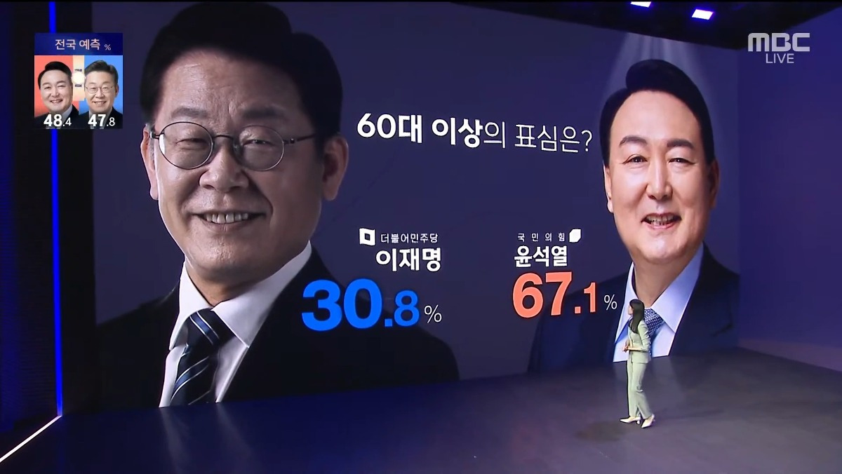 30대, 60대 이상 세대에서는 지금 대통령이 승리