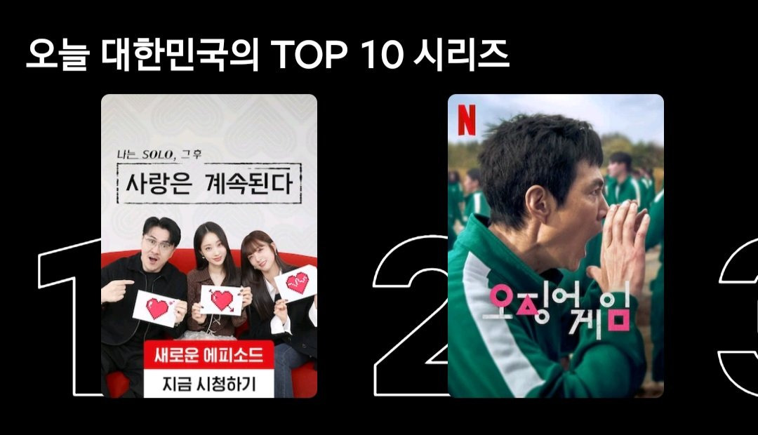 오겜2 공개 후 열흘만에 한국 1위에서 밀어낸,
