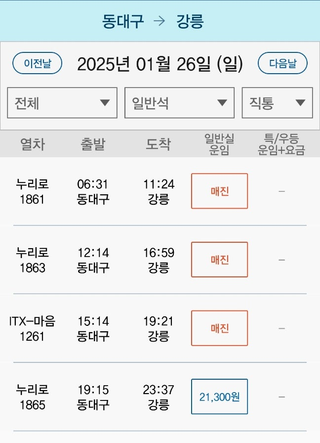 대구에서도 경주에서 합류해서 동해선타고 강릉감 ㅇㅇ