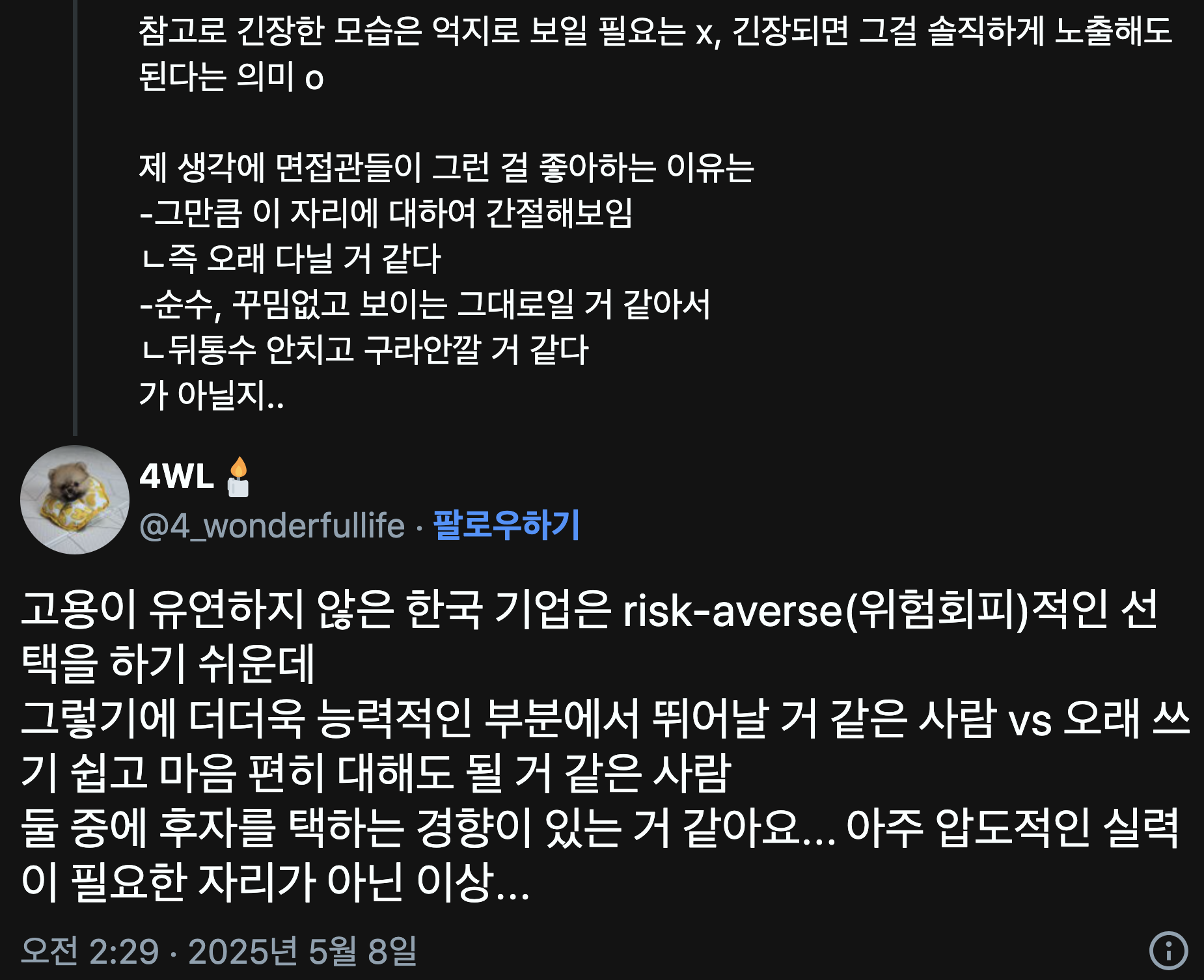 | 회사에 레깅스 입고 가는거 어떻게 생각해? (0) | 2025.05.08 |