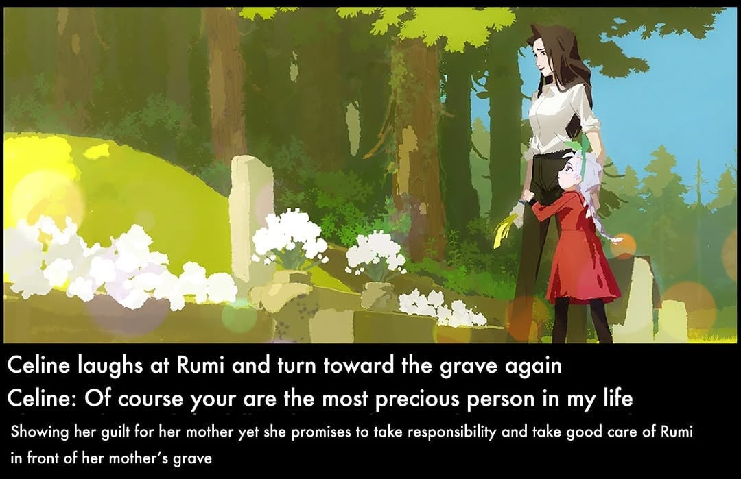 셀린은 루미의 엄마에게 죄책감을 드러내면서도, 무덤 앞에서 루미를 책임지고 잘 돌보겠다고 약속한다.