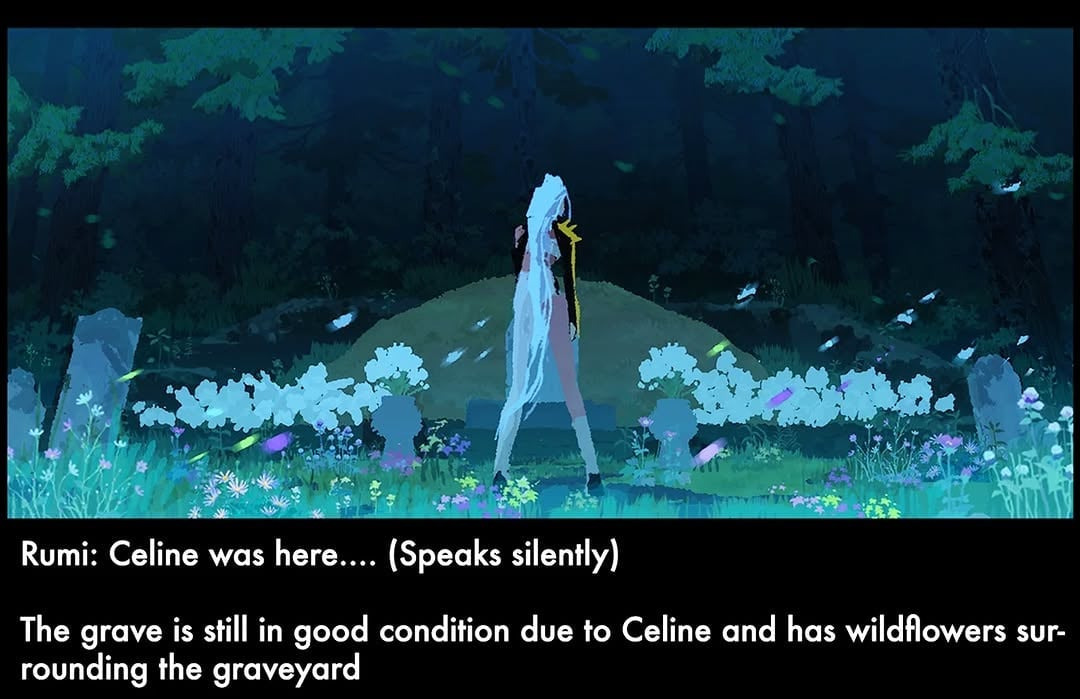 셀린은 루미를 향해 웃고는 다시 무덤 쪽으로 몸을 돌린다