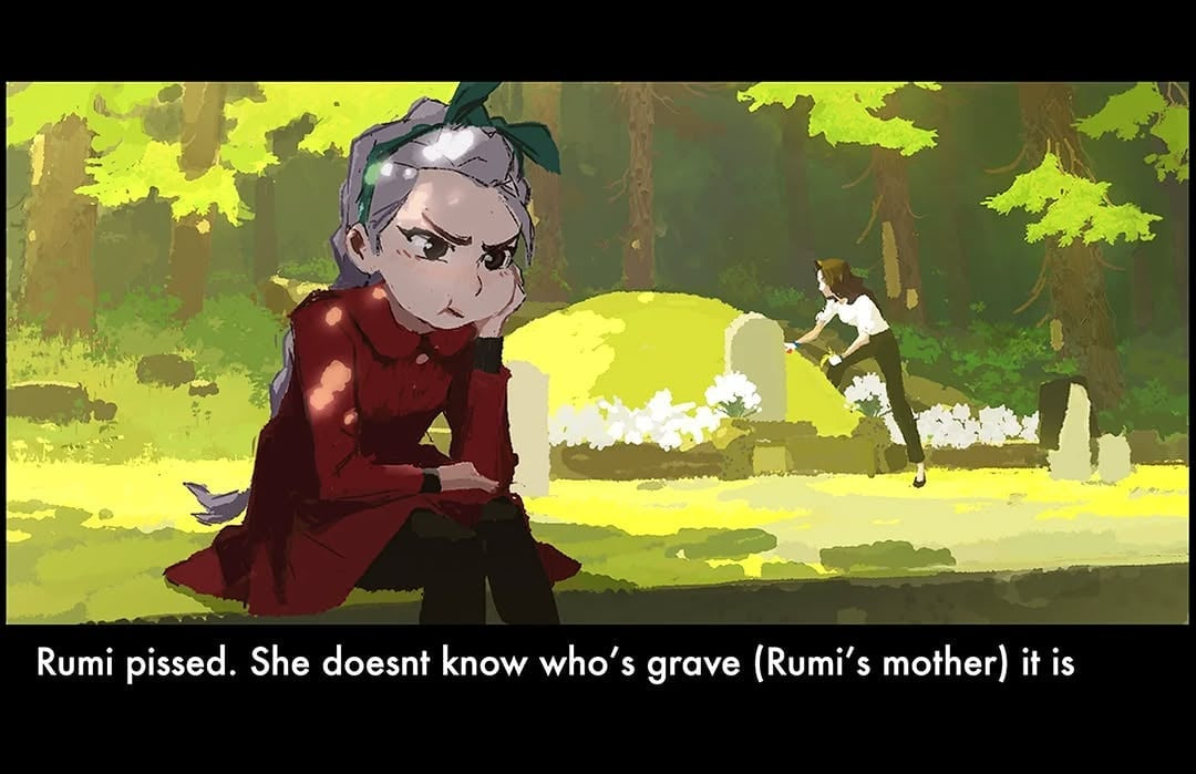 루미는 심술을 낸다 루미는 무덤이 누구의 것(루미 엄마)인지 모르고 있다