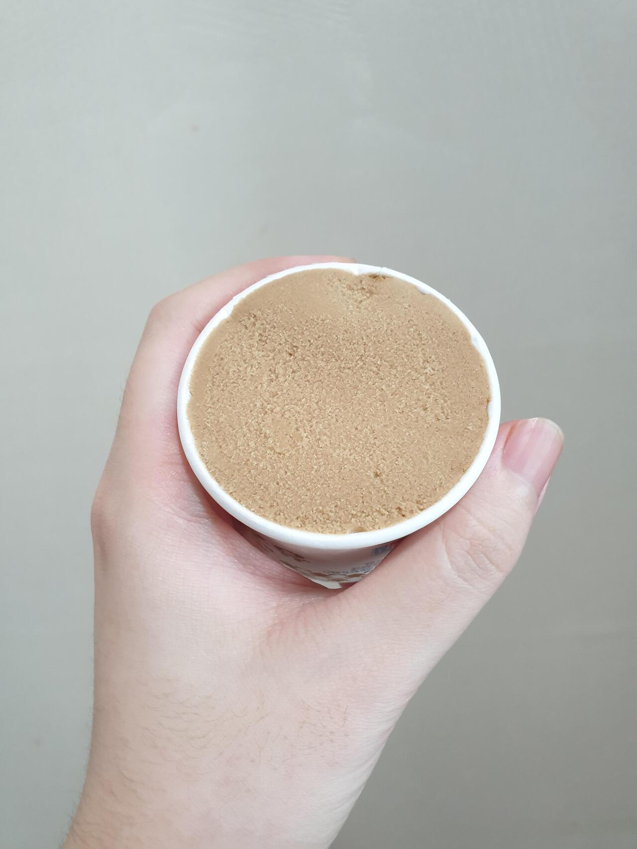 뚜껑 안쪽에 이렇기 스푼이 있긴 한데... 아이스크림 질감이 좀 쫀쫀한 느낌이라서 그냥 집에 있는 밥숟가락으로 조금씩 떠먹는게 훨씬 더 편했어. 물론 밖이라면 조금 녹여서 먹으면 되겠지만 그러면 아이스크림의 본래 질감을 못느끼는걸... 제품개발자가 의도한 질감도 느껴봐야된다고 봐.