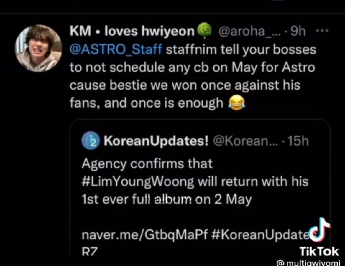 사장한테 아스트로 컴백 5월에하지말라고 전해주세요'