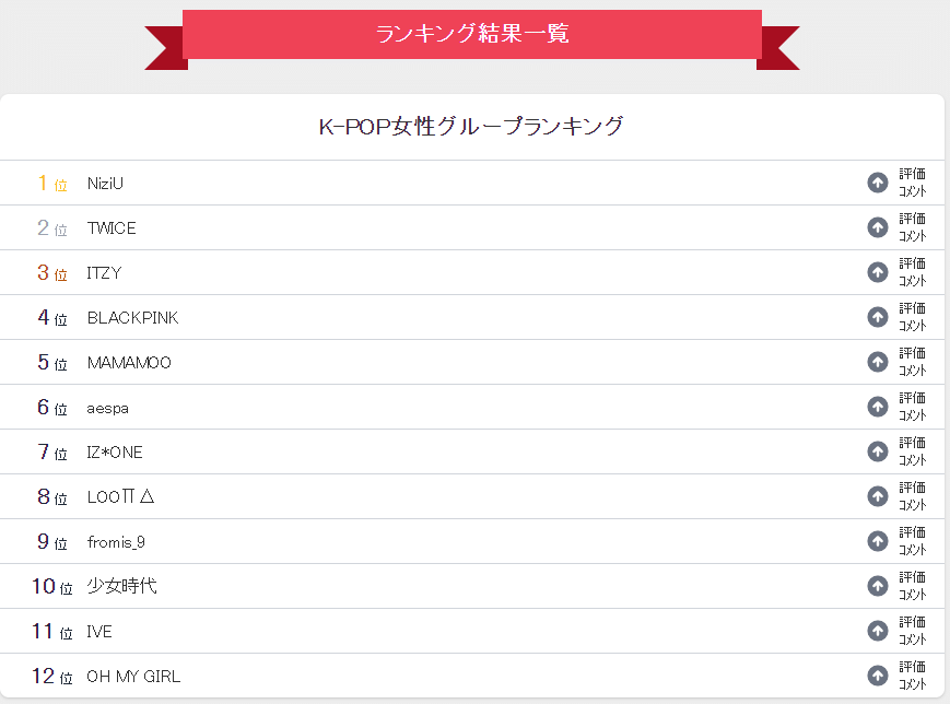 2022년 일본 남녀 10대연령대가 투표한 가장 좋아하는 케이팝 여그룹 순위(최근 3개월내)