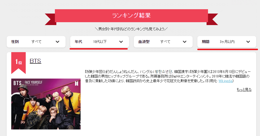 2022년 일본 남녀 10대연령대가 투표한 가장 좋아하는 케이팝 남그룹 순위(최근 3개월내)