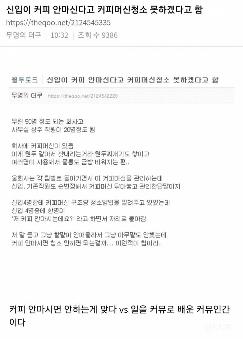 개인컵 이용하는 사람에게 탕비실 컵 설거지 시키기