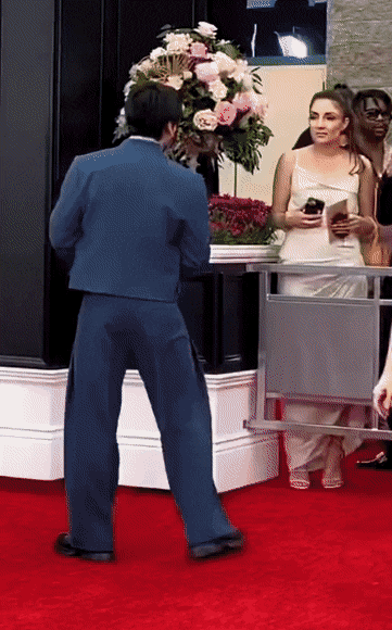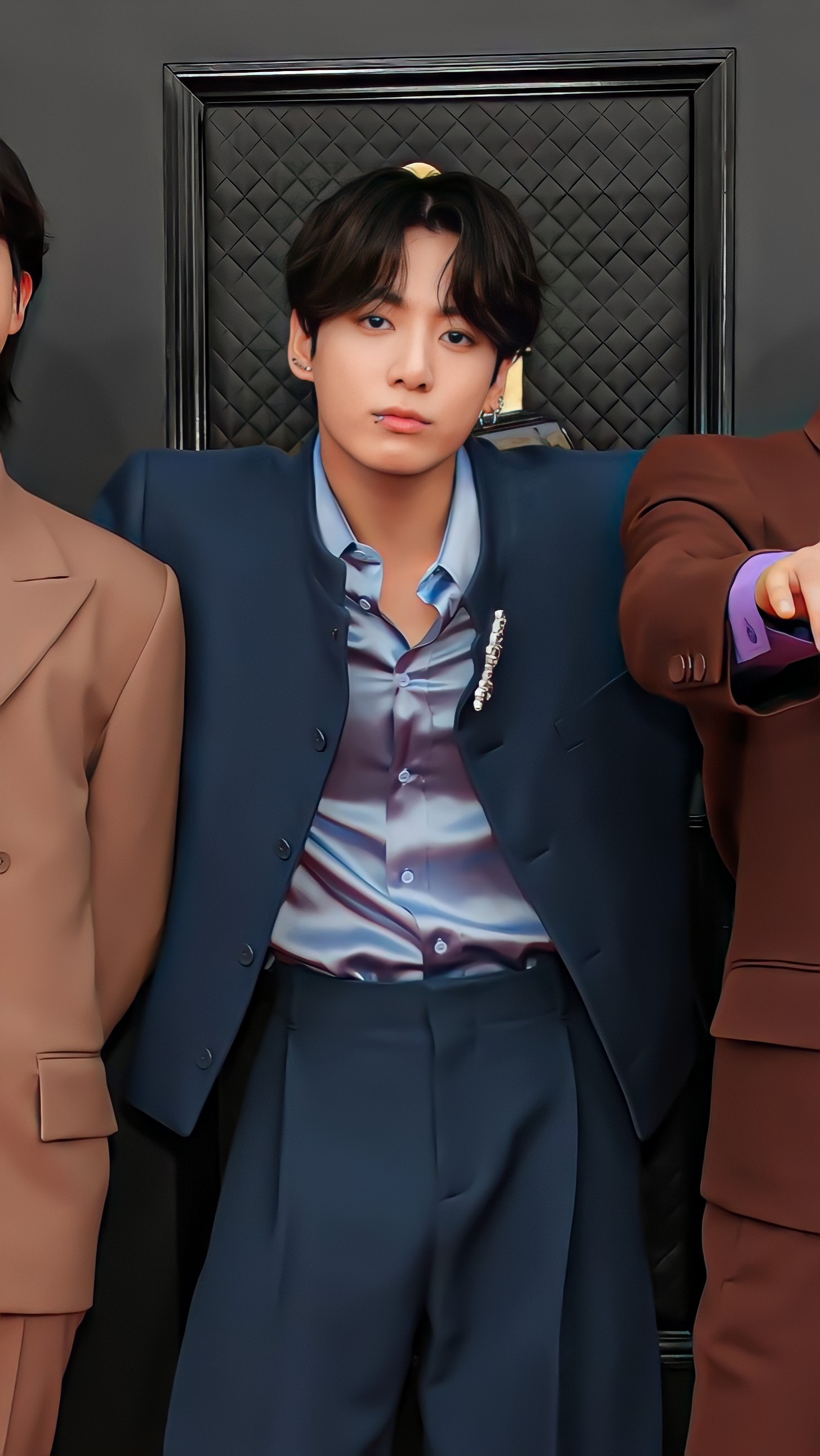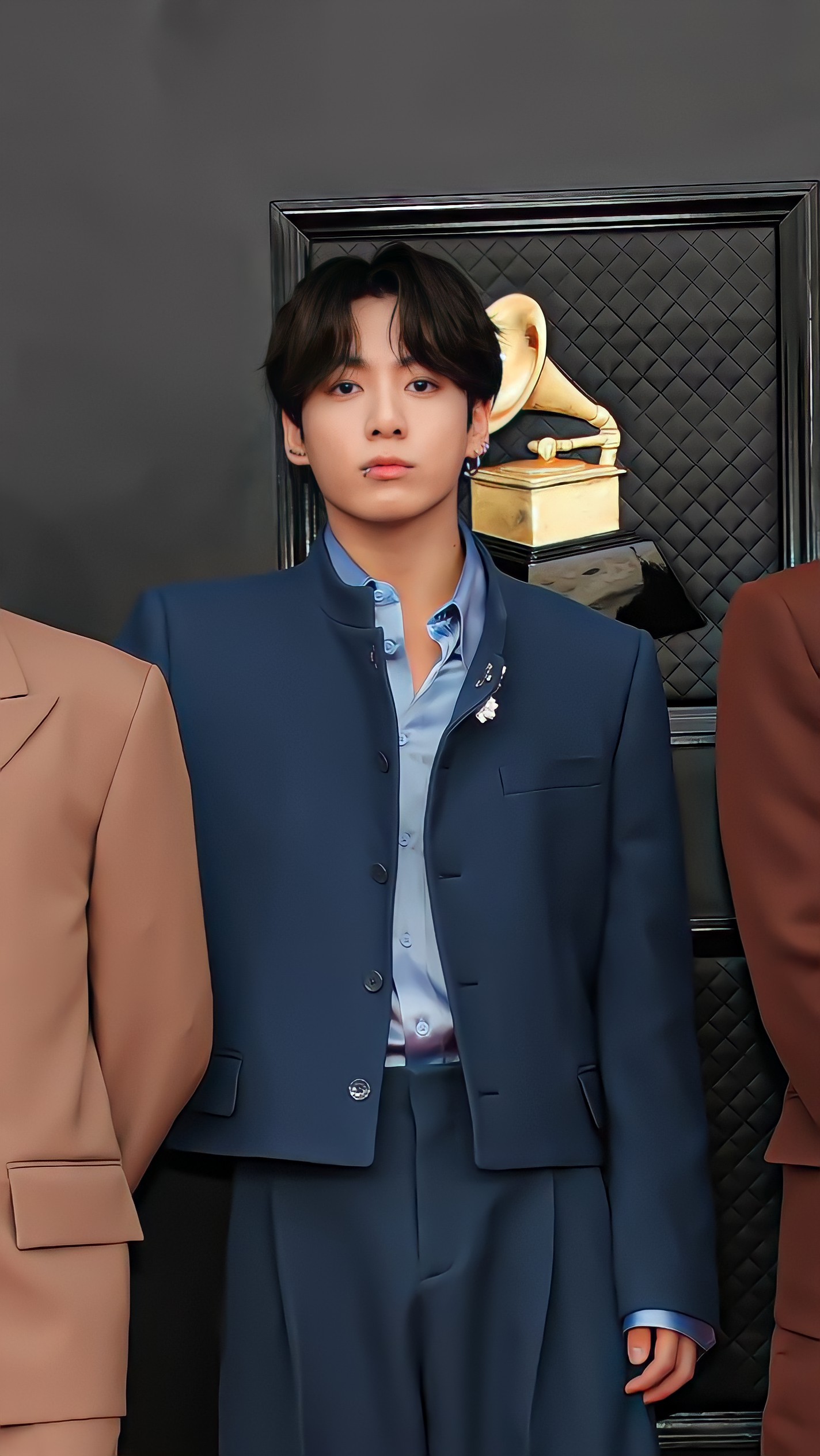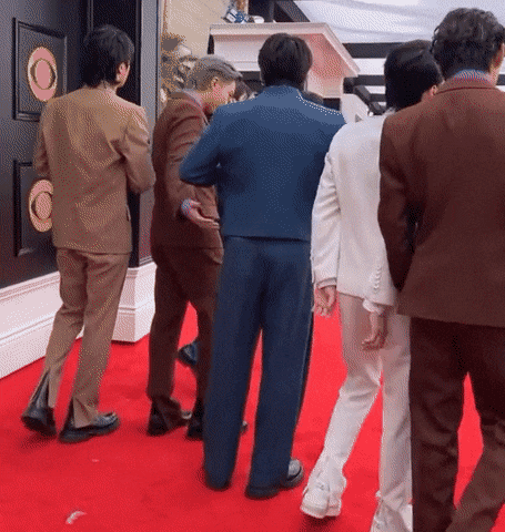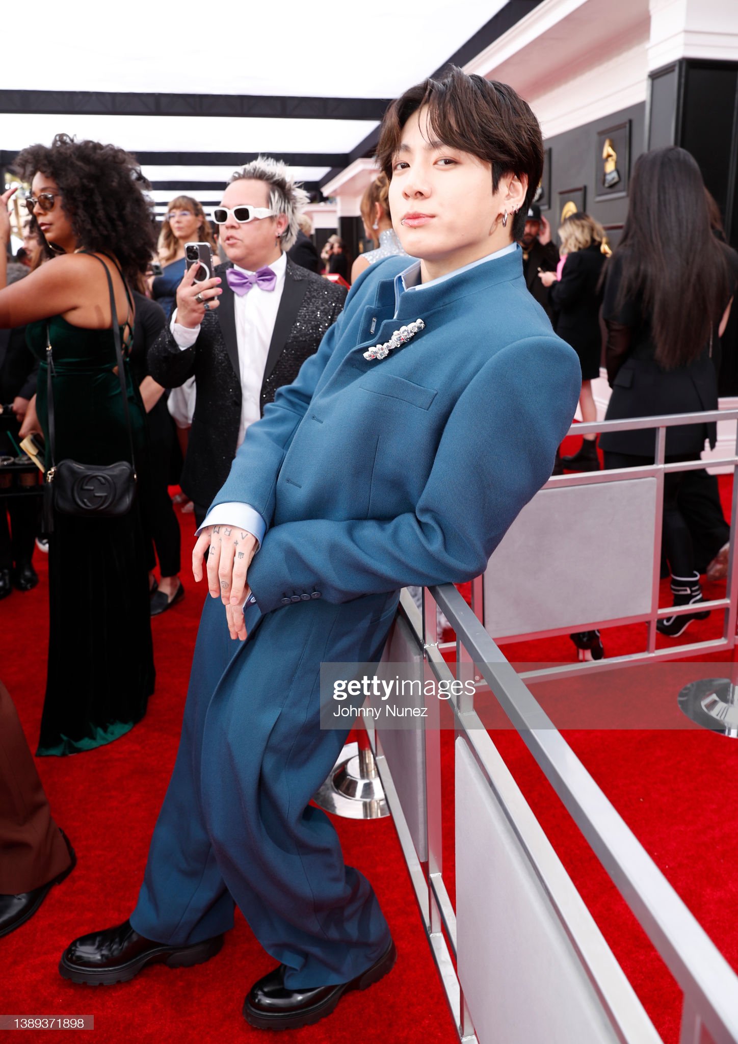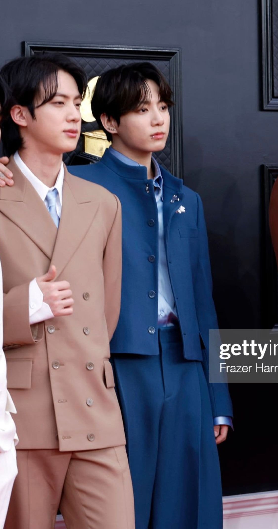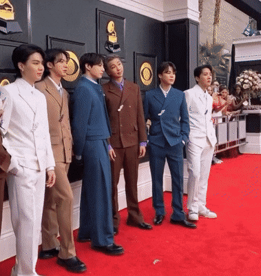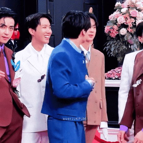 "BTS 중 한명을 뽑자면 고저스한 예일 블루색의 크롭재킷과 플리츠 팬츠를 매치한 정국"